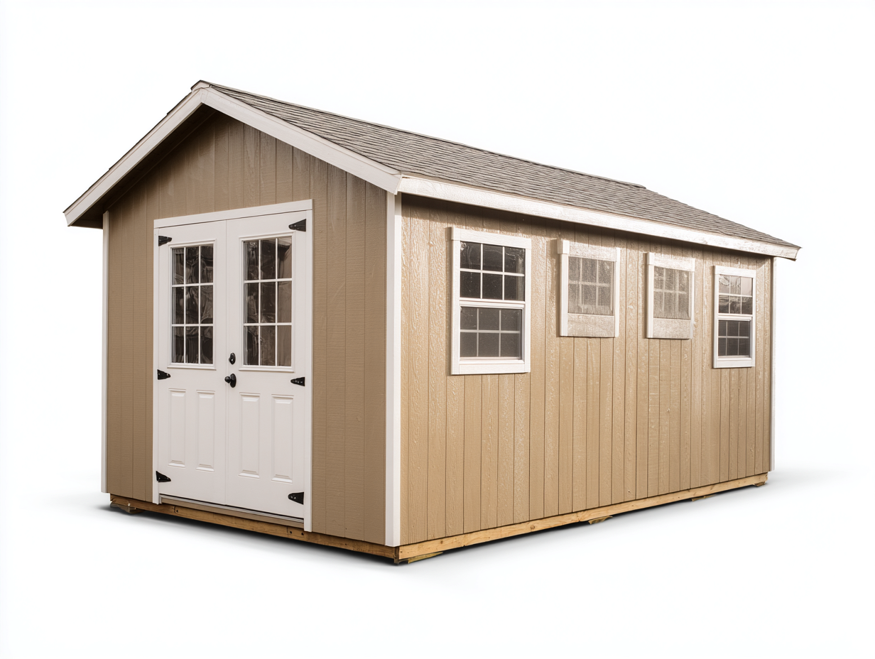 Casetta da giardino in legno con porte doppie e finestre - 300x220x230 cm - beige e bianco - design classico esterno