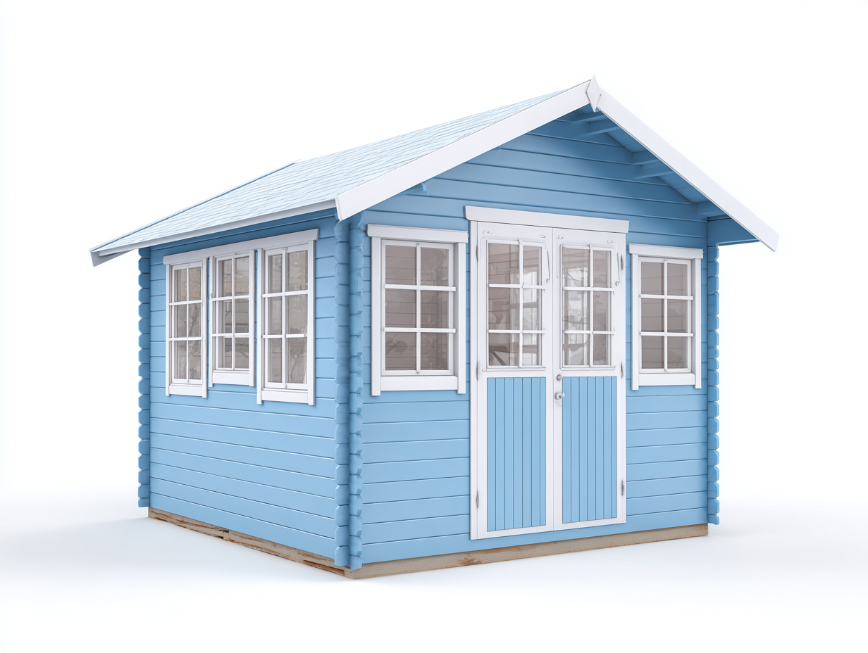 Questa casetta da giardino in legno presenta uno stile classico con tetto a doppia falda e struttura solida progettata per migliorare l'organizzazione degli spazi esterni. Il design con porte frontali e numerose finestre favorisce l'ingresso della luce naturale e rende l'ambiente interno più luminoso. La combinazione di colore azzurro e dettagli bianchi crea un aspetto ordinato e decorativo adatto a giardini e cortili.