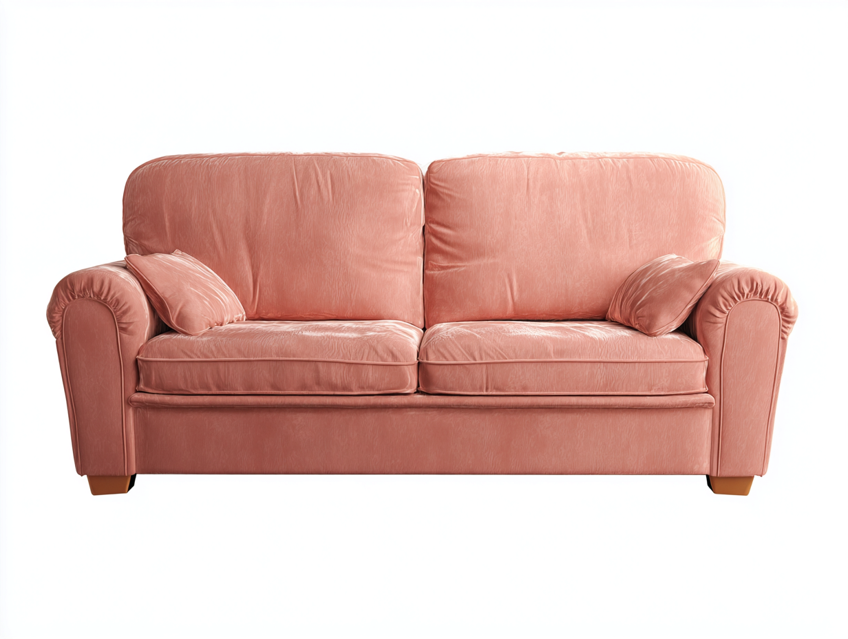 La seduta imbottita e i braccioli arrotondati favoriscono una postura rilassata. Il colore rosa salmone aggiunge un tocco decorativo all'ambiente living e si integra facilmente con arredi in stile classico o contemporaneo. La base stabile contribuisce a mantenere il divano saldo durante l'utilizzo.